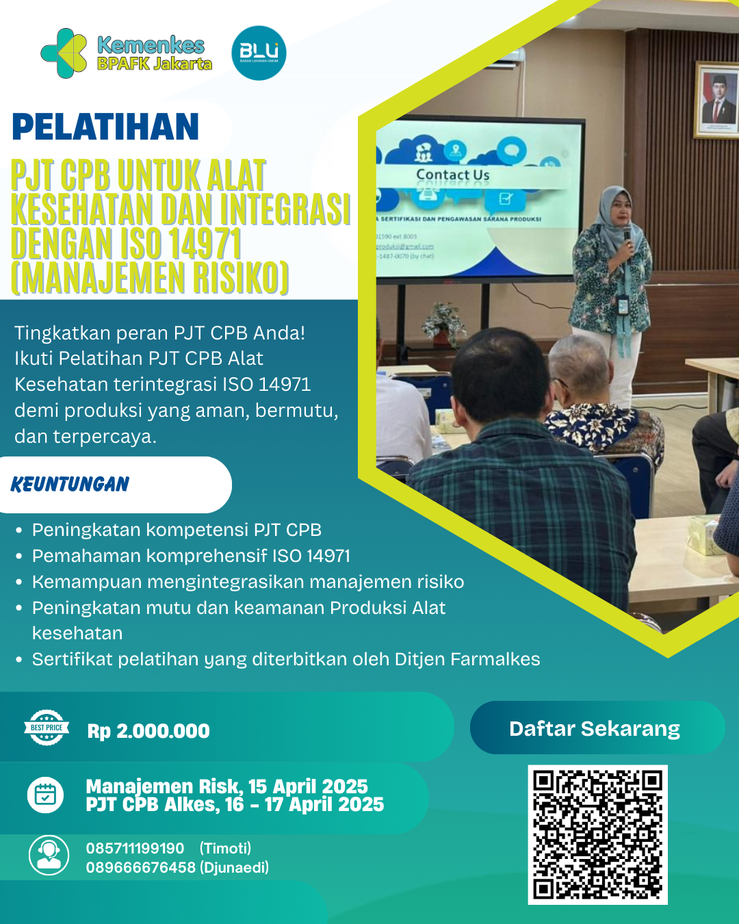 Pelatihan Cara Pembuatan yang Baik (CPB) untuk ALKES dan integrasi dengan ISO 14971 (Manajemen Risiko)